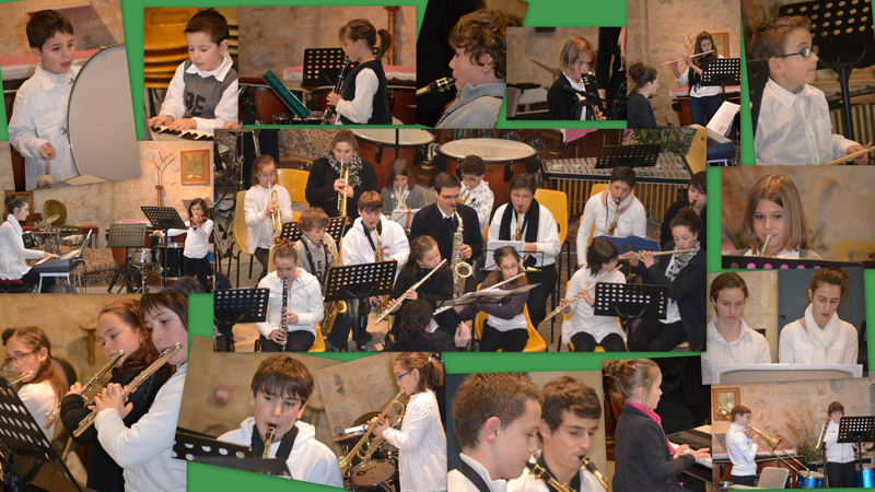 16h00 le public est là et attend ! Il est temps de commencer. Le stress monte dans les travées mais c’est avec brio que s’enchaine la vingtaine de morceaux programmée. Classique (Andante, Symphonie n°94..), Rock (Let’s Begin The Rock …), Jazz (Cotton Club…), variété (Simpsons ..), tous les genres sont abordés, les auditeurs en redemandent. En solo, en duo, en quatuor, en ensemble, que ce soit avec les saxo, piano, clarinettes, percussions, flutes, ou cuivres, les élèves impressionnent par leur maitrise. La prestation des sisters Melody (piano) et Léa (violon) est remarquée et longuement applaudie.