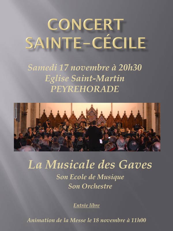 Dans toute société musicale, la Sainte Cécile est un temps fort de l’année. Aussi, dès la rentrée de Septembre, musiciens petits et grands de la Musicale des Gaves ont tâché de préparer au mieux ce rendez-vous. Et le résultat fut très satisfaisant avec une belle prestation en l’église de Peyrehorade samedi soir.