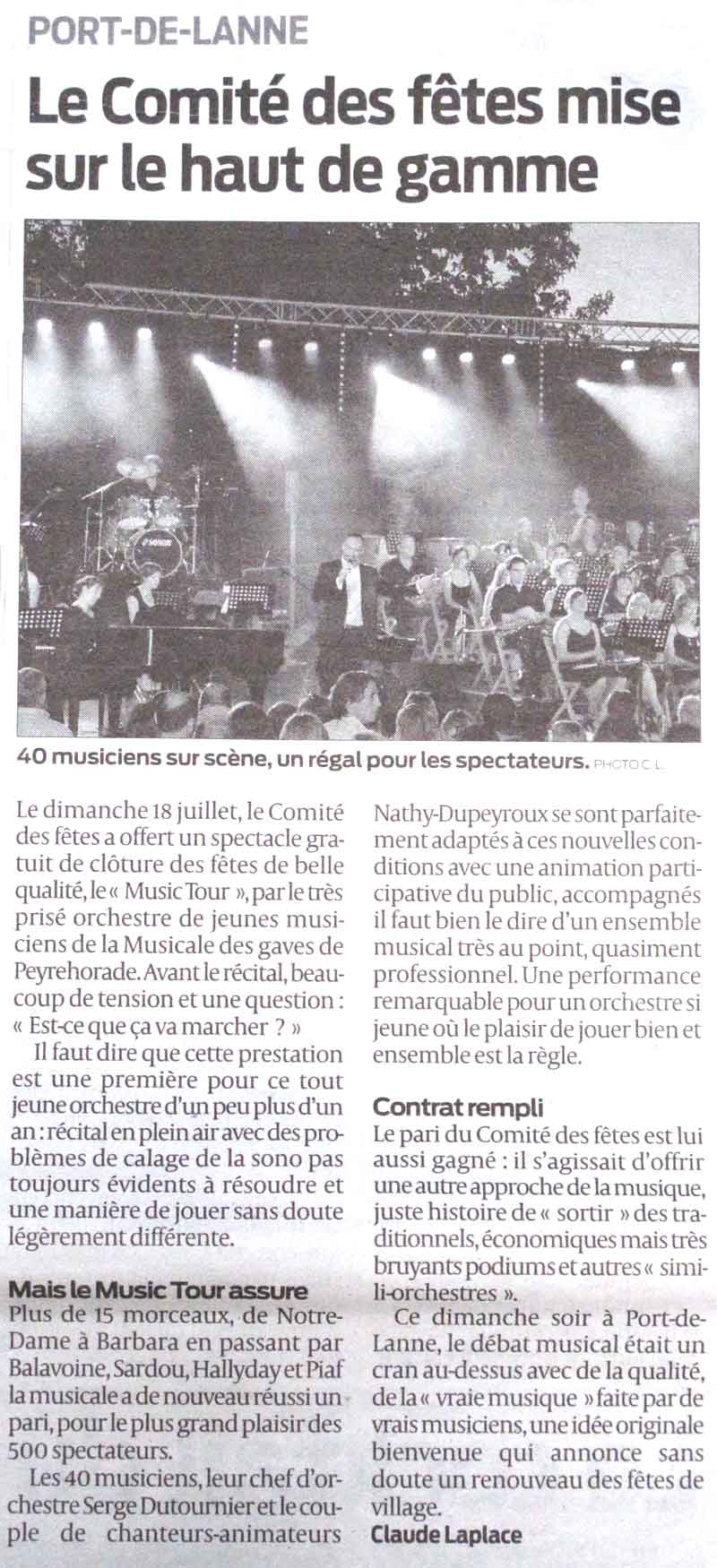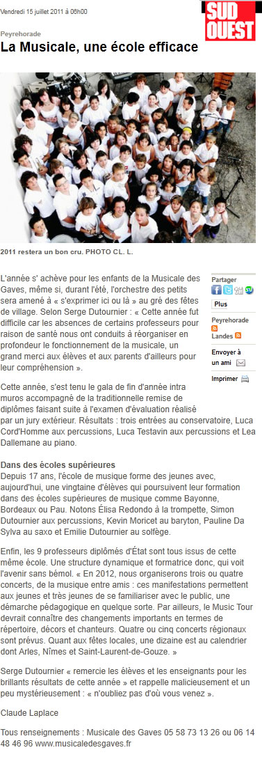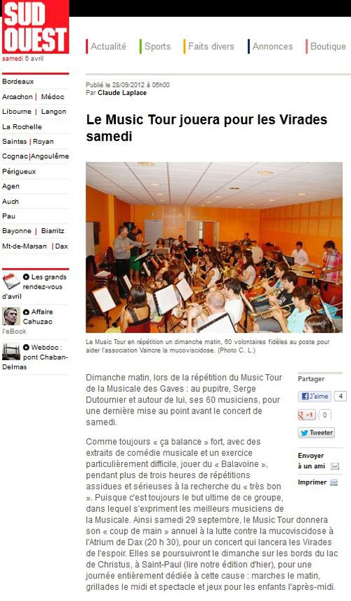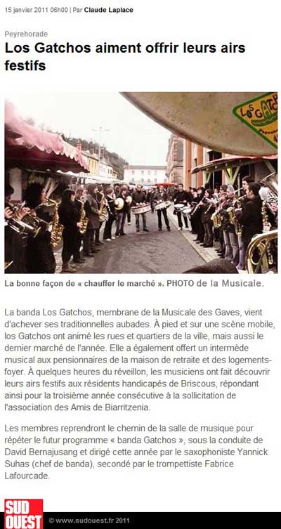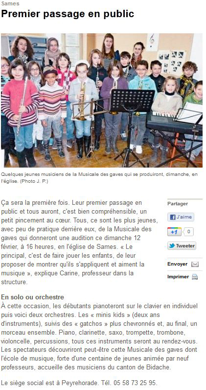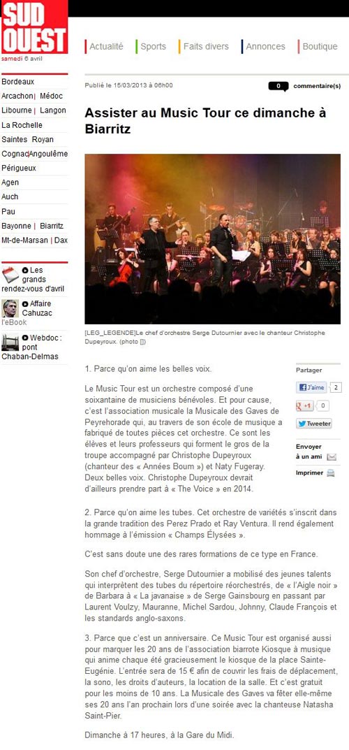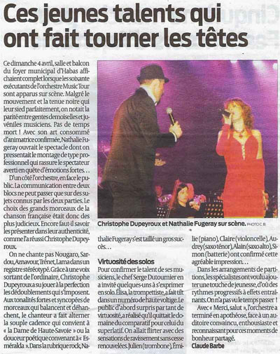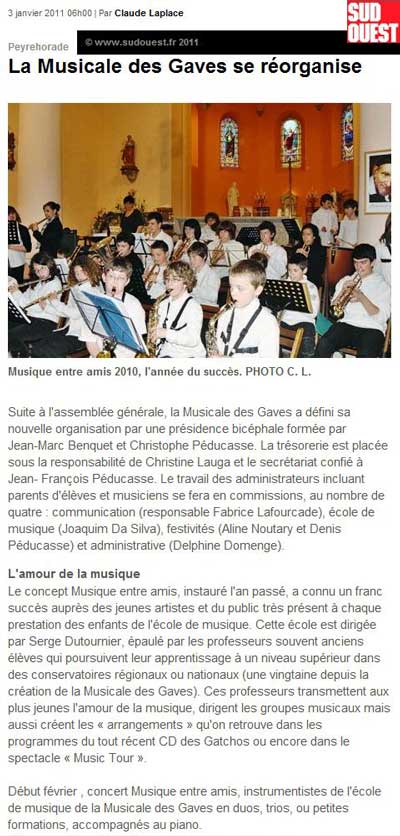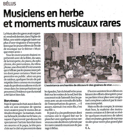 - Article Sud Ouest concert Entr\'amis