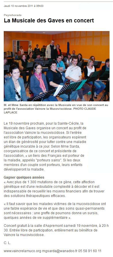 - Préparation du concert pour la mucoviscidose.